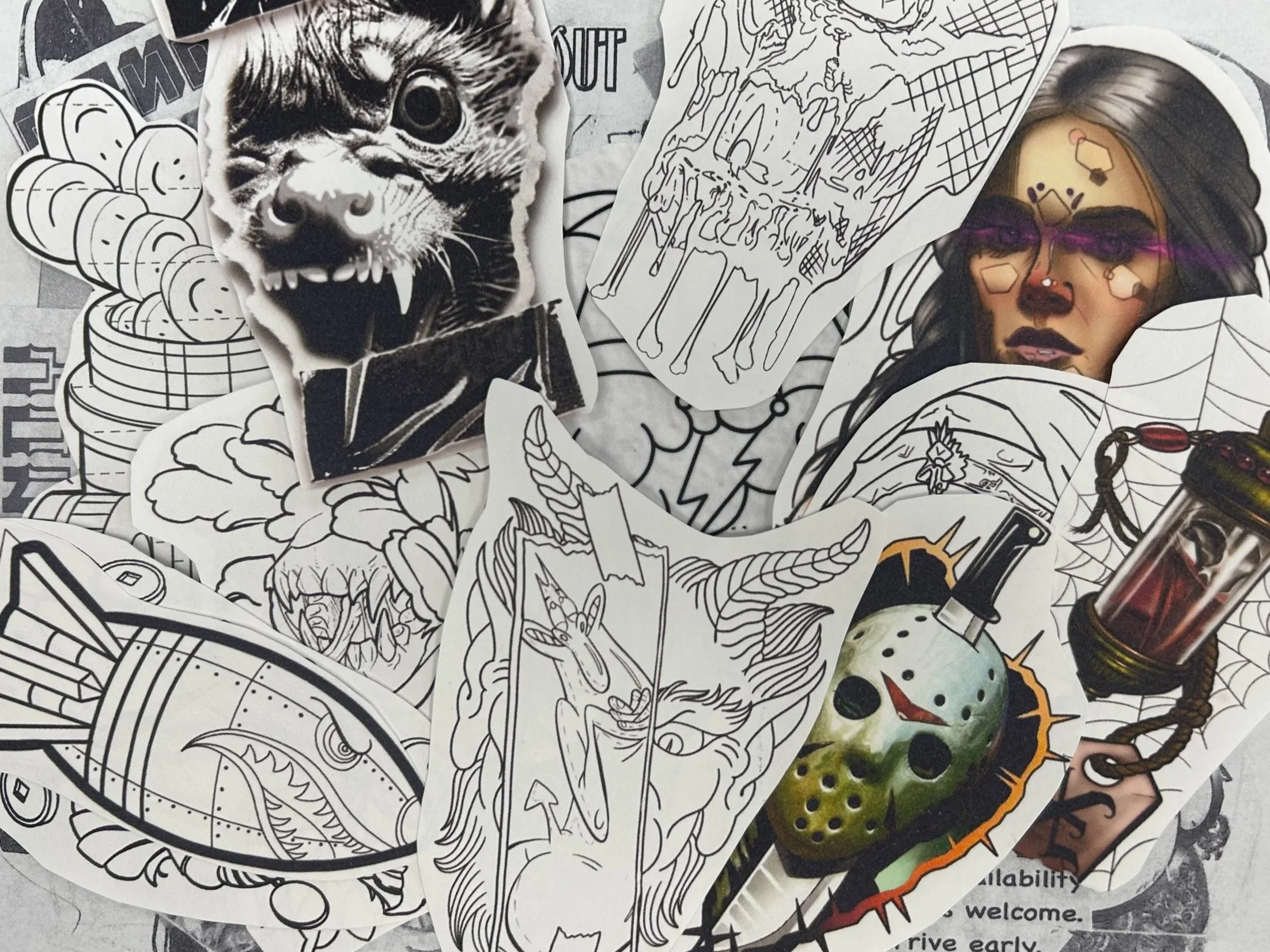 All designs are pre-drawn flash and will be tattooed as-is.