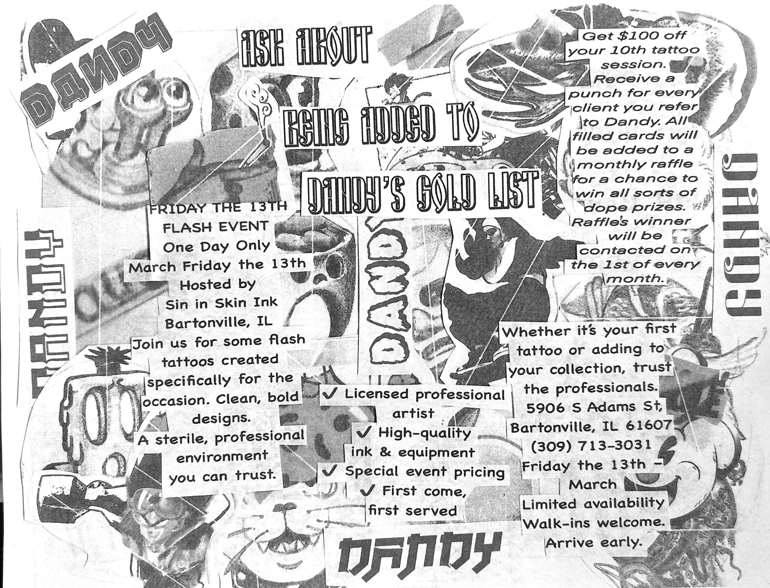Join us this Friday the 13th for a special tattoo event featuring a selection of limited flash designs created just for the day.