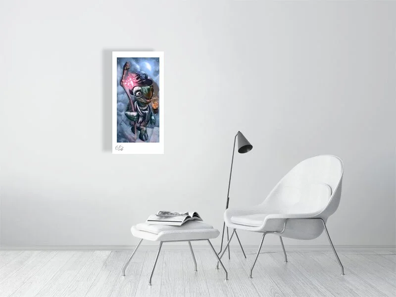 This print captures the spirit of adventure, resilience, and quiet wonder — perfect for anyone who loves fantasy worlds, character-driven art, or atmospheric storytelling pieces.